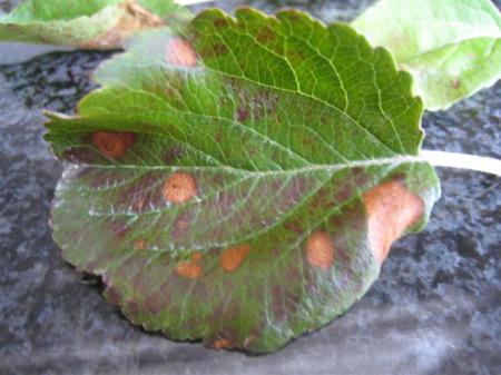 In onze nieuwe appelboom zitten bruine vlekken en ook hier en daar wat gaatjes in de bladen. Ook heeft hij nog geen bloesem gehad. Het is een zgn trio-fruit boom met elstar, golden delicious en Cox's appelen. De bladeren staan hieronder in een overzichtsfoto: