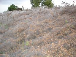 Als het echt moet, dan kan ik niet anders dan alles weg te nemen, maar de plant bedekt een grote oppervlakte op een talud, en dat zijn plaatsen die je toch zo lang mogelijk ongemoeid laat want het is zeer lastig werken.