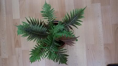 Dit is een winterharde tuinvaren, die het in huis niet echt naar z'n zin heeft. De temperatuur is te hoog in huis. Na het langzaam afsterven van het blad zal er beslist wel weer nieuw blad gevormd worden.