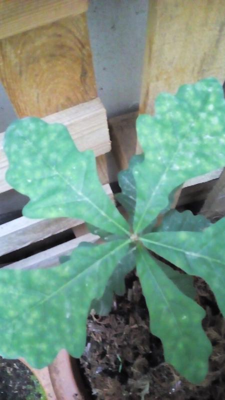 Ik heb ook een eikje, in een pot, Ga ik een ´grote bonsaiboom´ van maken, en die heeft precies hetzelfde. Ik heb niet het idee dat het ernstig is