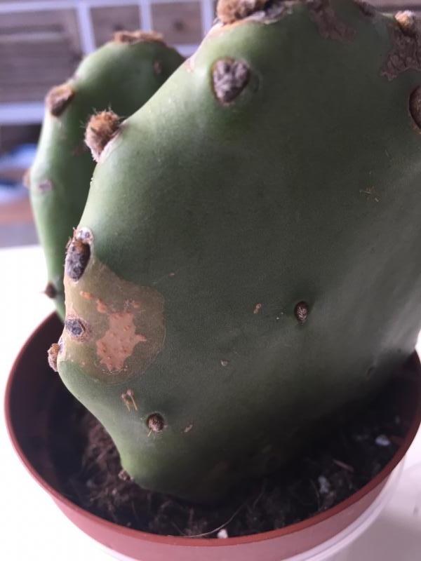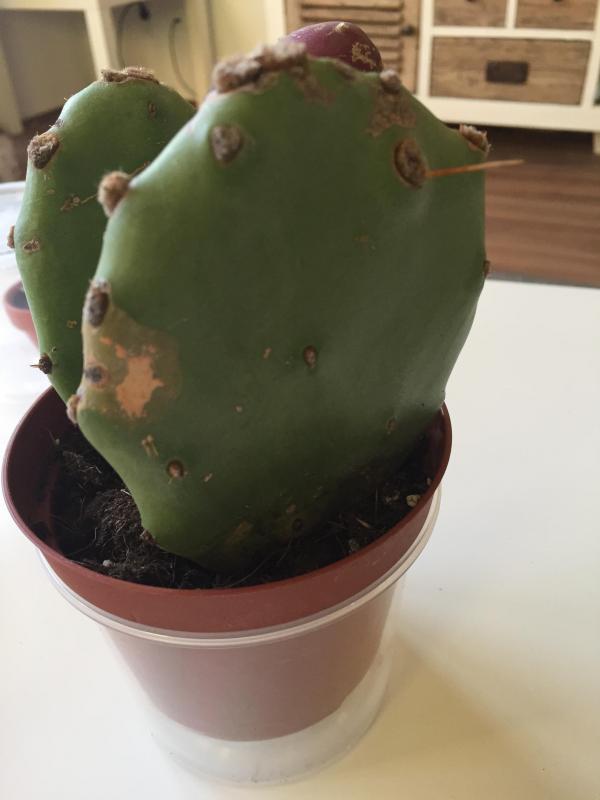 Ik heb net een Optunia gekocht. Dit is mijn eerste cactus. Nu ik thuis kom zie ik een gelige vlek zitten op schijf 1. De andere schijf heeft deze verkleuring ook een beetje rond om de 'stekel rondjes' bovenop.