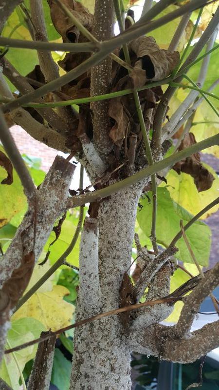 Lijkt me geen schimmel, maar een vrij ernstige aantasting van wolluis.