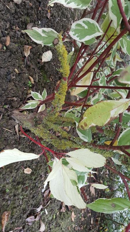 In de andere plant ( bonte Cornusinfo-icon) zitten onschuldige korstmossen.
