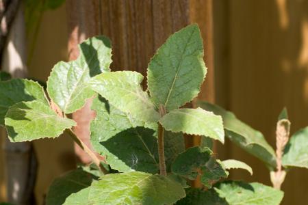 Hij verliesd ook wat blad. Dit voorjaar geplant en heeft wel gebloeid (zo gekocht) en daarna géén bessen gegeven maar begon al snel te krullen en te vervormen.