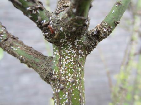 Deze beestjes vind je vaak op zwakke struiken,het lijkt erop dat de plant niet alleen last heeft van de luizen maar ook van verstoorde wortel groei.