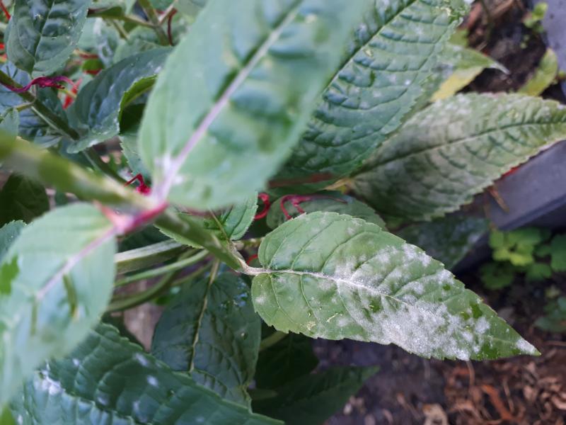Meeldauw. Sommige cultivars zijn daar erg gevoelig voor. Om nu nog te behandelen is zinloos, gezien het bijna einde van de bloeitijd.