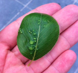 Vorig jaar had deze boom ook al last van zwarte vlekken die daarna gaten vormden in de bladeren.