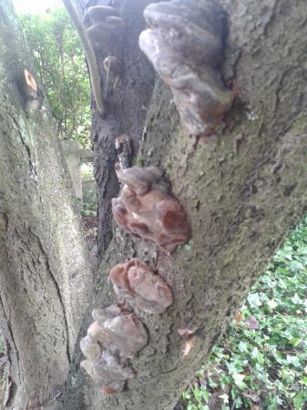 na snoeien. Het is een sluipmoordenaar. Uiteindelijk wordt de boom steeds minder vitaal en kan omvallen. Onze prunus heeft de zwammen jaren gehad en we hebben hem geveld toen er plotseling een scheur verscheen in een zware tak. Het mooie was er al lang vanaf want hij werd ieder jaar kaler.