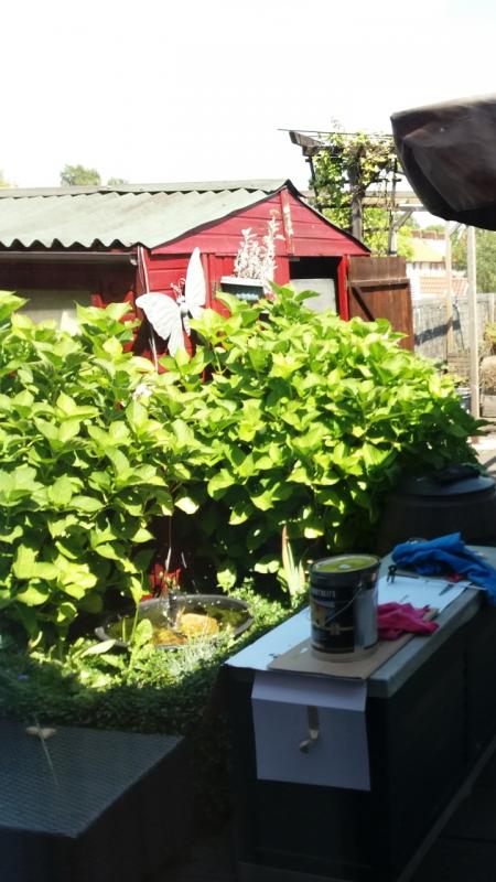 Ik wil graag zonder een heel biebboek te moeten gaan lezen de basis beginselen van snoeien leren zodat ik goed voor de planten op ons dakterras kan gaan zorgen en leiden. Tot nu toe hebben ze er gewoon gestaan en gestaan en gestaan.. Zoals je bijvoorbeeld op de foto kan zien waar de Hortensia's in ons dakterrastuintje in 30cm aarde, bijna net zo hoog zijn als de schuur..