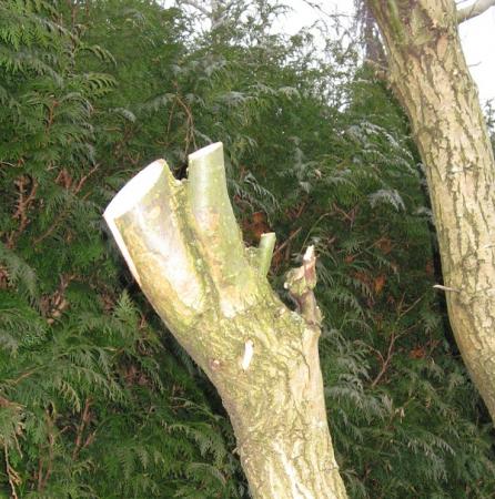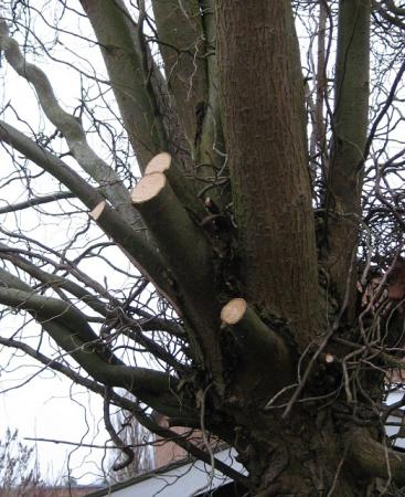 Is dat daarmee wel goed gedaan. Immers: als de boom weer uitloopt, heb je een nieuwe tak die groeit op een stukje tak dat zelf ook al nieuw is. Is dat niet slecht voor de stevigheid van de takken? Zo groeit er tak op tak op tak. Was het niet beter geweest die laatste 10-20 centimeter ook af te zagen, volledig tot het hout waar de boom oorspronkelijk gesnoeid is geweest?