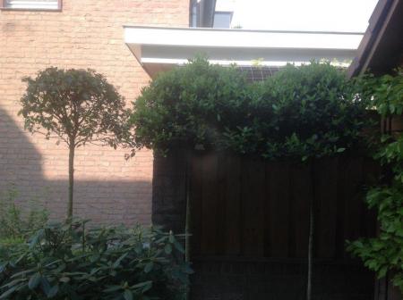 4 jaar geleden heb ik 3 Viburnums op stam (soort mij niet bekend) geplaatst. De meest linkse is vorig voorjaar vanaf een andere plek in de tuin verplaatst naar zijn 2 soortgenoten.