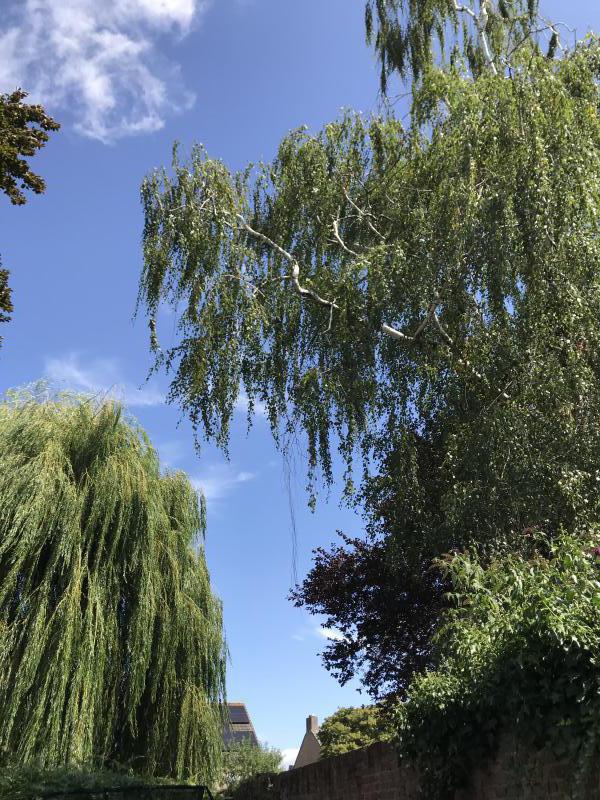 Een vraagje. Bij onze buren staat een erg hoge berk. Deze raakt ook bijna de beuk van de andere buren, zie foto. Onze buurman heeft ons verteld dat de boom is bekeken door een bomen dokter en helemaal in 'evenwicht' is. Wij vermoeden dat dat niet zo is, het lijkt namelijk of er tak op tak op tak... aan gegroeid is.
