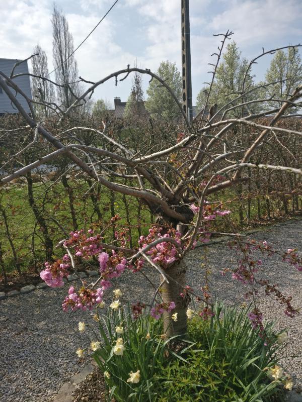 Er staat hier al meer dan 15 jaar een boompje dat amper groeit (met grillige vorm), bloeit elk jaar kortstondig met roze bloempjes, is dit een japanse kerselaar ? Ik zie nu dat er in de kruin mieren zitten (zie foto 3), gaat het boompje ervan dood en verwijder ik de mieren best (met mierengif) ?