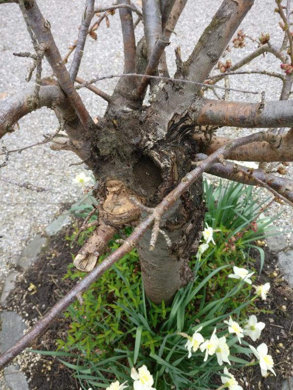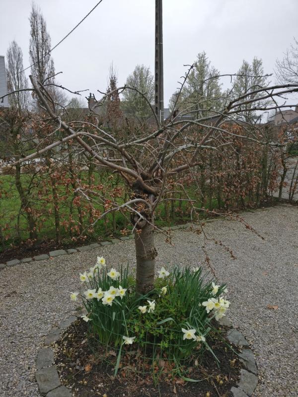 Intussen staat het boompje in bloei, maar slechts op een 2-tal takken, mag ik de andere (dode) takken kortsnoeien, of zal het boompje volledig afsterven (zie foto 4 : kruin is uitgehold).