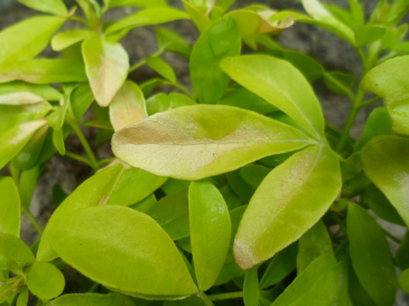 Slappe groei met als gevolg het hangen van de nieuwe groei komt bij Choisya