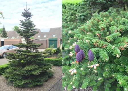 In mijn voortuin heb ik een deneboom/spar staan (verwacht dat dit de koreaanse spar is, maar weet dit niet zeker).