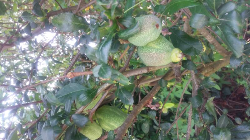 Chaenomeles speciosa, sierkwee. De rijpe vruchten geuren heerlijk.