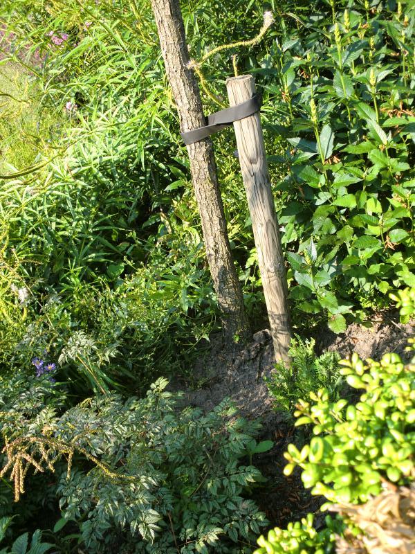 In de buurt stond een behoorlijke hulst, maar deze heb ik met kluit en wel gerooit. Enkele hoofdtakken zijn achtergebleven in de grond. Tijdens aanplant heb ik het plantgat goed ruim en diep omgespit gehad en de boom iets hoger gezet. Nu is de boom na aanplant iets gezakt tot maaiveld. Als ik bij de kluit wat zand weg haal kom ik de wortels na 5 cm al tegen. Ik weet dat deze bomen absoluur geen verharding kunnen verdragen, maar op een stuk gemeente grond staan ze ook al jaren in het gras. Wel is er 50cm rondom de kluit het gras weg gehaald. Heb de boom als containerplant aangepland. Msschien was de boom al zwakker. Op een andere locatie heb ik een meerstammig exemplaat aangepland uit de volle grond en die groeit zeer goed.