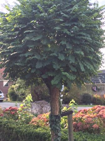 pseudoacacia kunnen zijn. Eind maart alle takken volledig terug snoeien, dan loopt 'ie weer uit tot de mooie bolvorm.