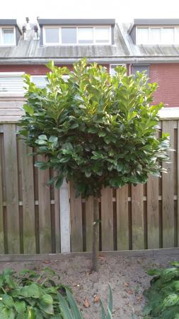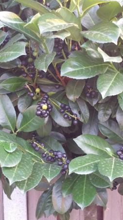 laurocerasus cultivar, laurierkers. Mogelijk de cultivar 'Etna'. De bessen zijn giftig bij inname. Instinctmatig blijven dieren van giftige bessen af.