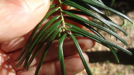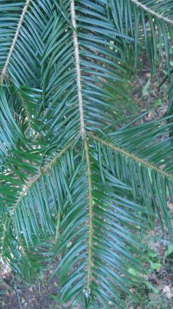 - de knoppen zijn vrij klein en stomp, harsrijk (dus zeker niet puntig zoals bij Douglasspar) - de reuk van de gekneusde bladeren is sterk citrus-achtig (dus niet appel-achtig zoals bij Douglasspar) - waarschijnlijk liggen er bij zo'n groot