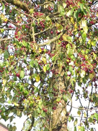 De vruchten hangen wel degelijk in trossen. En je houdt deze vruchten niet over na een zomer. Waarom lusten vogels deze vruchten niet?