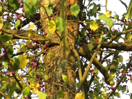 De bloesem in het voorjaar is wit dan rode vruchten en nu in het najaar weer (zonder bloesem). OK, het klinkt raar maar foto's zijn het bewijs.