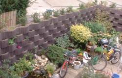 Misschien is het ook leuk om een stuk met een klimmer te laten begroeien, bijvoorbeeld een wilde wingerd. Ik denk dat deze wel aan het ruwe oppervlakte van de stenen hecht. Ik weet alleen niet of er openingen tussen de stenen zitten want anders heb je kans dat de plant naar de buren toe groeit waar ze misschien niet blij mee zijn.
