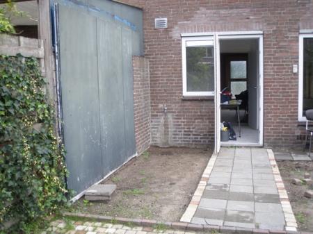 Zet er een bouwstaalmat tegenaan met Hedera. Dan zie je er na een paar jaar niks meer van.