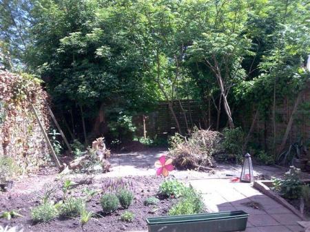 Onlangs hebben wij een huis gekocht, een doorsnee rijtjeswoning uit 1980. De tuinen waren erg verwaarloosd. Ooit is het waarschijnlijk een leuk tuintje geweest, daar kwam ik achter nadat ik alle hederainfo-icon verwijderd heb. De hele tuin was ermee begroeid! Gelukkig loonde het harde werk, want er kwam een terras onder vandaan! Niet het mooiste, maar voor de komende jaren volstaat het zeker.