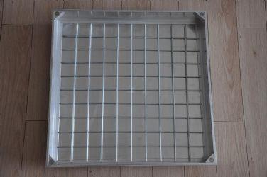 dergelijke deksels zijn te koop. Het is een metalen rooster waar een tegel