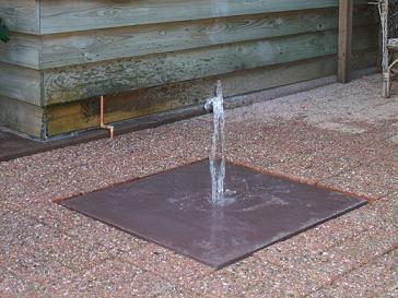 Op zich makkelijk te maken door een vierkante bak in te graven met daarop een stalen of stenen plaat met een gat in het midden voor de slang met een pompje. De bak zal groter moeten zijn dan de staalplaat.