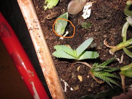 een crasula blad stek gelukt. zag laatst dat een blad was afgebroken.