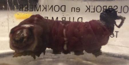 Die zijn eerst groen en vlak voor dat ze gaan verpoppen worden ze rood.