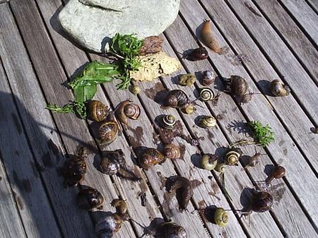 De slakken met caravan kunt u in het bos uitlaten. De exhibitionistische slakken kunt u aan de loopeenden voeren. Niet zelf opeten.