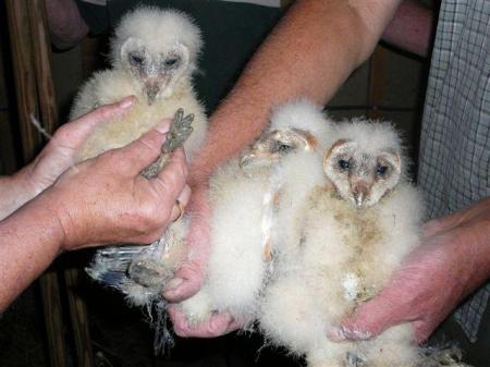 Nu enkele maanden later, zitten er 3 prachtige jonge kerkuiltjes in het blok, en ze zijn vandaag plm 5 week oud en ze zijn gelijk geringd.