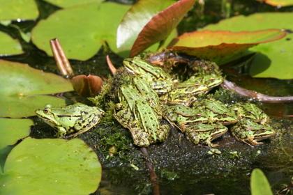 Geen vraag, gwoon 13 van de 16 kikkers die graag op dit eilandje zitten.