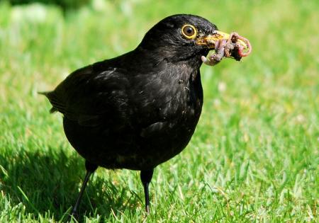Je kan de merel ook een keer verwennen door een schoteltje neer te zetten