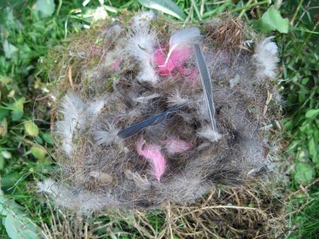 Dit nestje vond ik bij het schoonmaken van het kastje. Er zitten jaarlijks koolmeesjes in, maar zo'n mooi versierd nestje hadden we nog nooit gezien.Een creatief beestje dus.