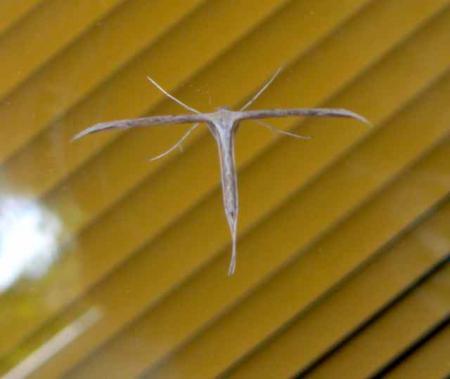 Een vedermot, mogelijk uit het geslacht Pterophorus. Wanneer en waar is deze waargenomen?