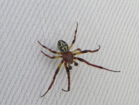 Wij vonden in de uiterwaarden bij Werkendam een spin van ongeveer 8 mm groot (zonder de poten). Ik heb al heel wat foto's afgekeken maar ik kan de naam van het beestje niet vinden. Weet iemand welke spin het is?