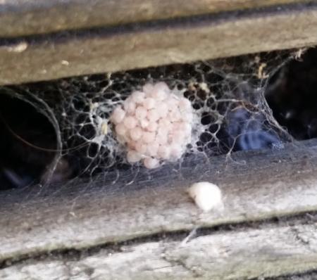 Dit zit op mijn balkon tussen de vlonders. Iemand enig idee van welk soort deze eitjes zijn?