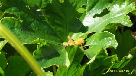 Hallo allemaal, dank voor jullie antwoorden. een sprinkhaan, dat was ook mijn eerste gedachte, Maar een gele? En tamelijk klein? Ik twijfel. Mijn buurvrouw dacht eerder aan een of andere krekel, maar daar ben ik ook niet echt van overtuigd.