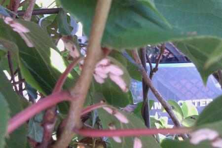 Aan de onderkant van de bladeren van onze kiwiplant zitten heel veel kleine, witte rupsen/larven met een bruine kop (ong. 1 cm lang). De klimop die in hetzelfde rek groeit heeft er geen last van. Iemand enig idee wat dit is?