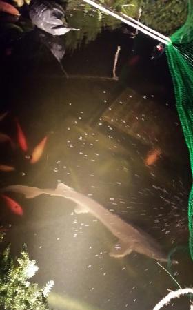 voorlopig heeft steur zich wat hersteld geloof ik... en hangt niet meer ondersteboven , maar zwemt toch al eens rond. Al steekt hij zich nog goed weg. Het is wat specialistenwerk geloof ik , als ik sommige discussie hier lees... benieuwd hoe het verder gaat verlopen. Er ligt een net over de vijver zodat hij er niet meer uit kan , maar dat trekt natuurlijk op niets meer nu