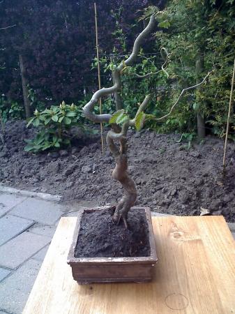 Ik heb trouwens een kronkelhazelaar (even terzijde) en vind het een enorme uitdaging ermee aan het werk te zijn als bonsai. Maar je hebt wel gelijk Yves, dat ie onvoorspelbaar is; toch doe ik hem niet weg, want ik leer ervan. Ik hoop ooit onderstaand beeld te behalen.