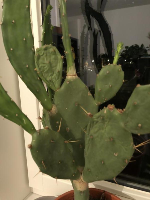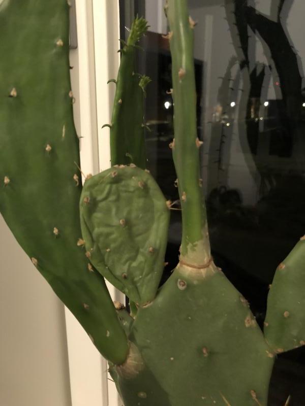 Over het algemeen gaan alle cactussen hier in huis goed, alleen deze cactus doet het niet zo goed en ik vraag me af wat ik fout doe. Ik heb hem ongeveer 3 maanden geleden gekocht en sinds een maand rimpelt de cactus op verschillende plaatsen en hij is ook al 2 bladeren kwijt. Staat bij raam op het noorden.
