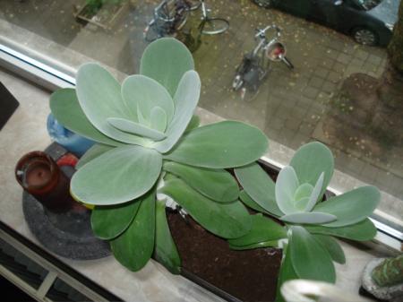 Kalanchoe thyrsiflora. Geef gerust veel minder water. De grond mag best uitdrogen tussen de gietbeurten.