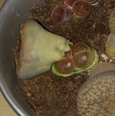 Hallo iedereen. Thuis heb ik nu al een tijdje een lithops staan, met 3 grote 'knollen'. Daar heb ik nu een vraag over: bij eentje kwam er een scheur in de onderkant. Ik begreep niet waarom, maar liet het zo. En nu een aantal dagen verder, zitten er nieuwe lithops onder de oude?! Hoort dit zo? Het is een erg apart gezicht, en hoop dat iemand me hiermee kan helpen.