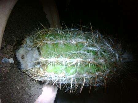 Akkoord met het feit dat de plant zeer zeker nog te redden is door het zieke stuk weg te snijden tot op het zuivere weefsel ttz geen vlekjes oid meer aanwezig. MAAAR ! je mag de plant NIET op z'n zijde laten liggen, je moet 'm rechtop zetten liefst nog in een lege en net iets te kleine bloempot zodanig dat het snijvlak volle verluchting krijgt om te drogen maar nergens tegenaan komt. Laat men de plant op z'n zijde liggen dan is het niet denkbeeldig dat hij uit de zij-areolen wortels gaat maken (geotropisme namelijk) wat bijzonder vervelend is. Als troost kan gezegd worden dat oreocereus nu niet bepaald een snelle wortelaar is maar 't zou moeten lukken he .. 't is nu volop groeiseizoen .. mogelijk vangt de koe toch een haas :-D